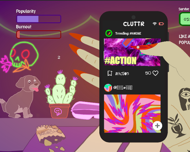 We were inspired by the frantic pace of modern social media and the weird humor of finding popularity while everything is shaking.