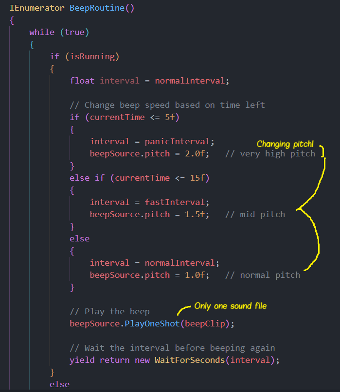 Since the player is racing against a bomb timer, we knew right away that the most important sound in the game had to be the tick, or in our case, a sharp, electronic beep. We intentionally chose a simple, slightly annoying tone because it instantly creates that “uh-oh, better hurry” feeling without overwhelming the player.
