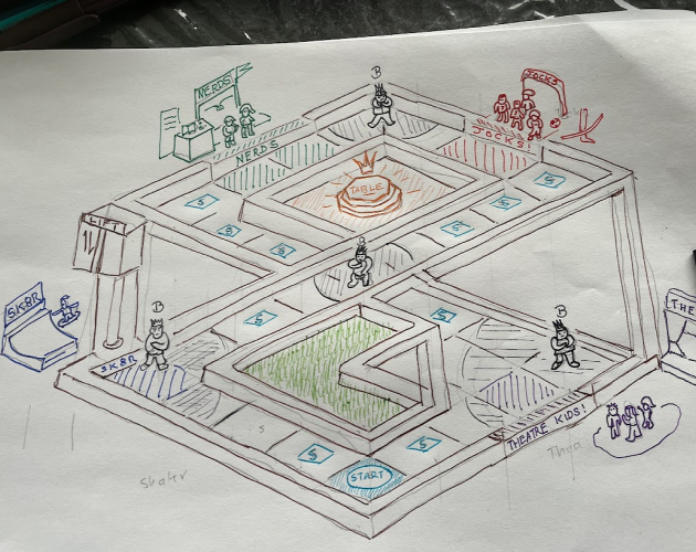 - Win Condition: Reach the Principal's Office (Center 2x2) with 15+ Clout.