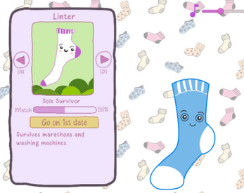 Your blue sock has lost its pair in the washing machine and you are looking for its pair and using the Linter app to choose its match with another sock by taking it on three dates with choices that the date likes!